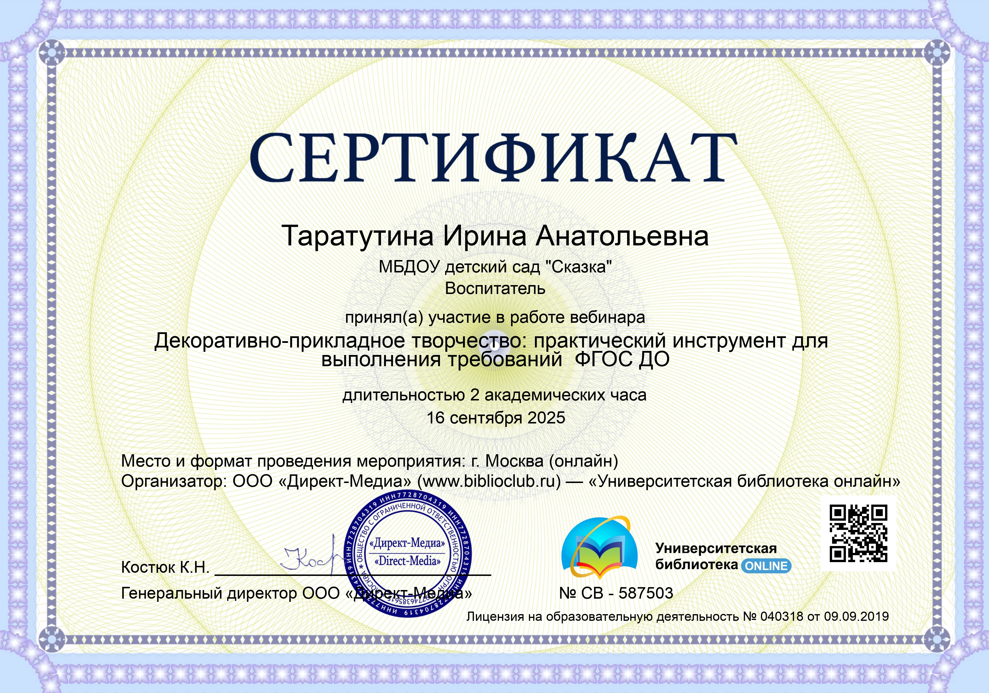 Вебинар "Декоративно-прикладное творчество: практический инструмент для выполнения требований ФГОС ДОО"