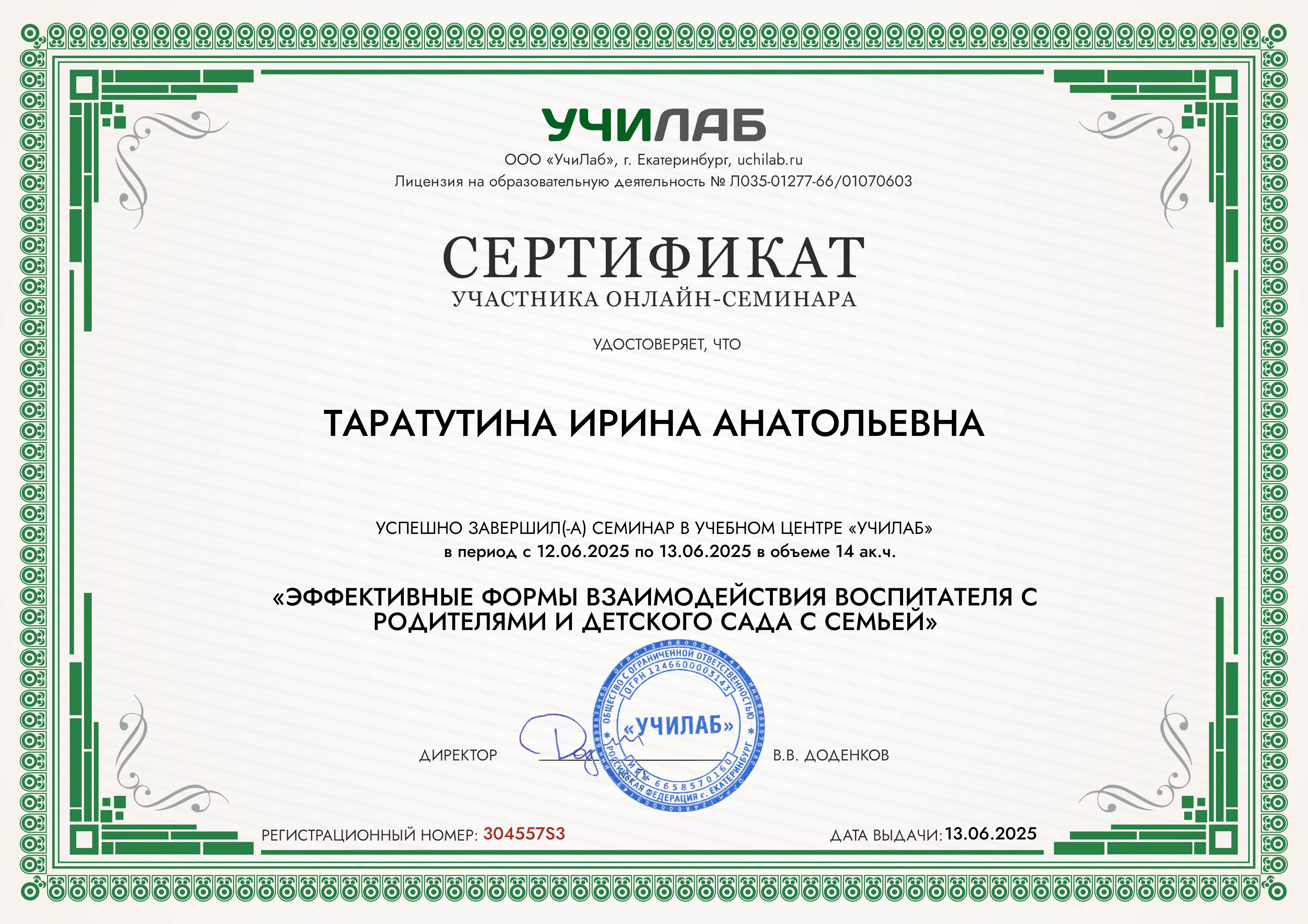 Диплом участника курса "Деятельность педагога по формированию представлений о семье у детей и подростков в рамках ФГОС ОО и ДОО"
